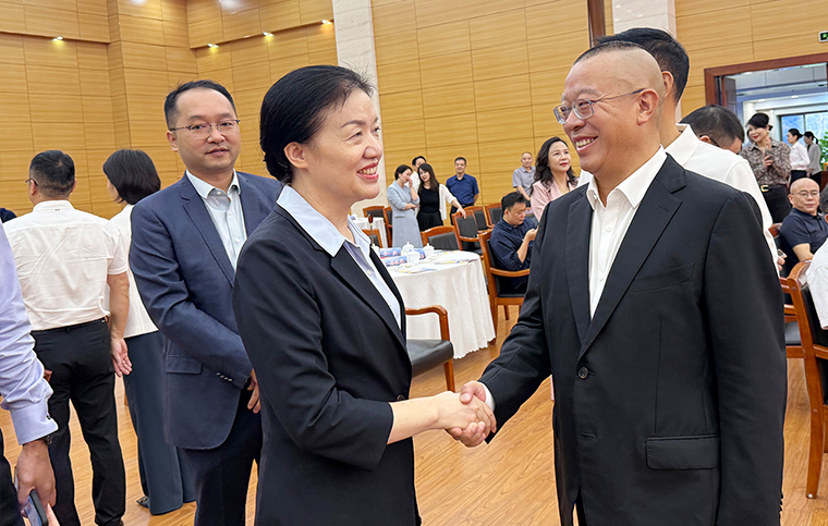 胡国安董事长与其他嘉宾一道,就如何进一步推动长沙的城市建设和经济发展进行了深入交流。他表示,站在新中国成立76周年的历史节点,我们深切感受到国家从千年梦想到民族复兴的伟大征程,也见证了绿之韵集团二十二年来与祖国共同成长的奋斗历程。自创立以来,绿之韵始终坚定政治站位,积极贯彻党的方针政策,坚持产业报国、实业强国的初心,持续投身公益事业,以实际行动践行“百年企业”的梦想。展望未来,绿之韵将继续秉持创新驱动的发展理念,充分发挥自身在大健康产业的优势,深度融入长沙高质量发展进程,积极响应“三高四新”战略号召,为长沙决胜“十四五”、奋进“十五五”贡献企业力量。