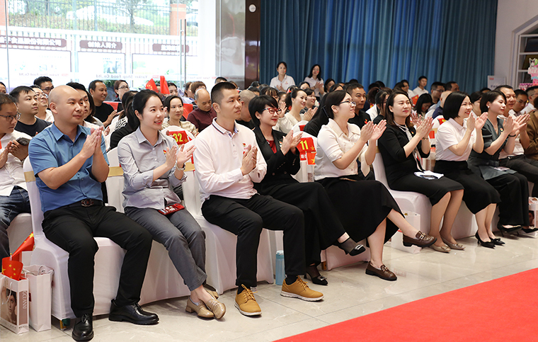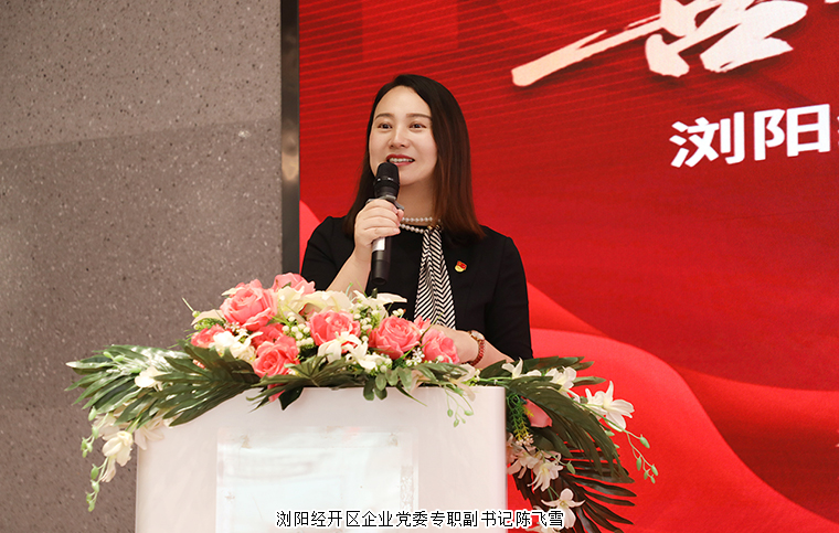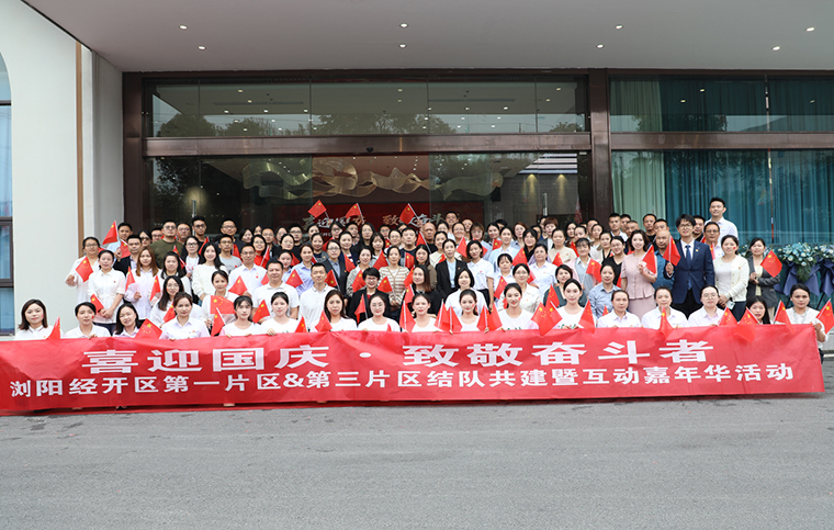 红旗漫卷山河壮,七十六载谱华章。为庆贺中华人民共和国成立76周年,近日,由浏阳经开区第一片区、第三片区联合主办,绿之韵集团第二党支部与盐津铺子第一党支部共同承办的“喜迎国庆·致敬奋斗者”结对共建暨互动嘉年活动举行。浏阳经开区企业党委专职副书记陈飞雪,企业党委委员、党管科科长胡佳乐;绿之韵集团党委书记刘云,党委副书记许达仲,业务服务中心业务总经理、第二党支部书记陈建新;盐津铺子党委副书记汤云峰等领导出席,片区百余名企业党员职工代表齐聚一堂,以奋斗者之名共贺华诞。