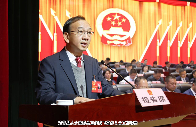 12月20日上午8点30分,大会在雄壮的国歌声中开幕。大会由安化县人大常委会主任陈飞燕主持。本次大会的执行主席是陈飞燕,(以下按姓氏笔画为序)王定岩、龙要平、卢映云、刘斌、刘百战、刘建辉、李益、李志生、李艳云、罗伟民、胡能华、胡能新、夏琼玲、郭剑锋、潘文剑。安化县领导李进、李德辉、谢可赞、廖小甫、郭环球、杨正华、杨颀斌、陈晓明等在主席台就座。老领导蒋金云、蒋跃登、伍湘安在主席台就座。大会应到代表330人,实到299人,因事因病请假31人,符合法定人数。安化县人大代表、益阳市工商联(总商会)副会长、绿之韵集团常务副总裁胡均安参加大会。