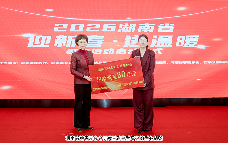 民政担当暖人心,慈善力量润湖湘。近日,湖南省“迎新春 送温暖”慰问活动启动仪式在长沙举行。湖南省民政厅、省文明办、省应急管理厅、省粮食和物资储备局等单位负责人,湖南省慈善总会代表,各市州民政系统及慈善组织负责同志,爱心企业代表和困难群众代表共同出席活动。湖南省绿之韵公益基金会理事长、绿之韵集团总裁劳嘉参加活动,并代表绿之韵公益基金会向湖南省慈善总会再次捐赠30万元爱心款项参与帮扶困难群众,帮助困难群众温暖过年。