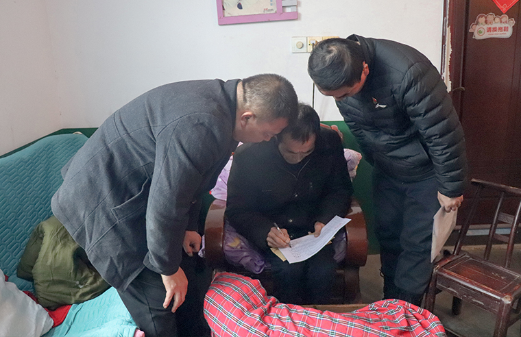 在南园村,62岁的退役军人陈友根身患多种重病,医疗开支让整个八口之家步履维艰。大儿子一家打工维生,小儿子夫妻均为重度残疾人,还有一个幼子需要照料。生活的重担没有压垮这家人相互扶持的信念。蒋文秘书长与陈友根并肩而坐,详细了解他身体医疗情况与家庭需求。“困难是暂时的,我们和您一起想办法。”真诚的交流,如亲人般的关怀,为他们注入了向前走的力量。