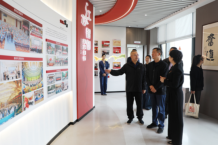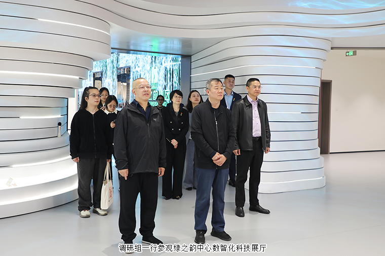 调研组一行循着企业发展脉络,先后参观了绿之韵中心数智化科技展厅、党建教育阵地、人大代表联络站及政协委员工作室等核心区域,进行了全方位、深层次的实地考察。在数智化科技展厅内,“水之道” 设计理念将东方 “上善若水” 的哲学智慧与前沿数字技术深度融合,通过沉浸式交互系统,全面展现企业发展历程、全链条产品体系、行业领先的科研成果,以及在公益助学、乡村振兴等领域的扎实实践,立体呈现出企业的创新活力、产业实力与社会担当。