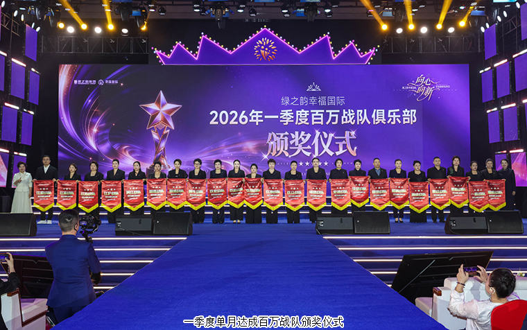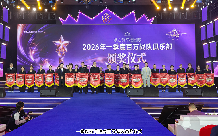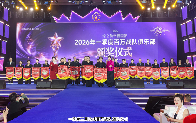 那些在市场一线冲锋陷阵的战队,如同璀璨的星辰,闪耀着夺目的光芒。他们以无畏的勇气和坚韧的毅力,带领团队取得了一个又一个辉煌的成绩。在2026年度一季度百万战队的颁奖仪式上,绿之韵集团市场运营中心市场业务总监谭红、绿之韵集团市场运营中心市场业务总监喻鸣鸾为一季度单月达成百万战队颁发荣誉;绿之韵幸福国际市场商学院特聘教授、绿韵悦喜智能科技有限公司首席研发专家骆春岗,绿韵悦喜智能科技有限公司总经理杨邢轩为一季度双月达成百万战队颁发荣誉;绿之韵集团运营部执行总经理、国际商学院常务副院长陈敏,绿之韵健康专家委员会专家委员、绿之韵幸福国际市场商学院院长侯俊霞为一季度三月达成百万战队颁发荣誉;绿之韵国际商学院执行院长黎芋成为一季度冠军战队颁发荣誉。