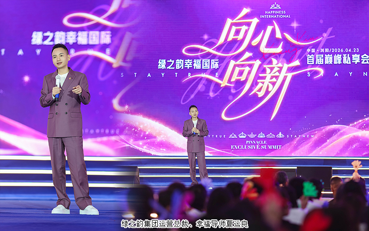 4月23日,绿之韵幸福国际2026首届巅峰私享会在集团总部国际会议中心盛大举行。绿之韵集团运营总裁、幸福导师夏运良及运营团队与来自全国各地的绿之韵家人齐聚一堂,共赴这场荣耀与思想交织的巅峰之约。大会全程通过线上直播同步呈现,吸引数万人次观看互动,热度空前。