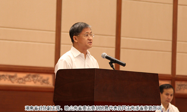 胡旭晟代表各民主党派省委致贺词。贺词中说,新的历史时期,非公有制经济地位将更加重要,作用将更加彰显,工商联舞台更加广阔、大有可为。热切希望工商联继续发扬优良传统,充分发挥组织优势,在中共湖南省委的正确领导下,汇集智慧、凝聚力量,投身经济建设主战场,为推进富民强省的宏伟事业作出更大贡献。
